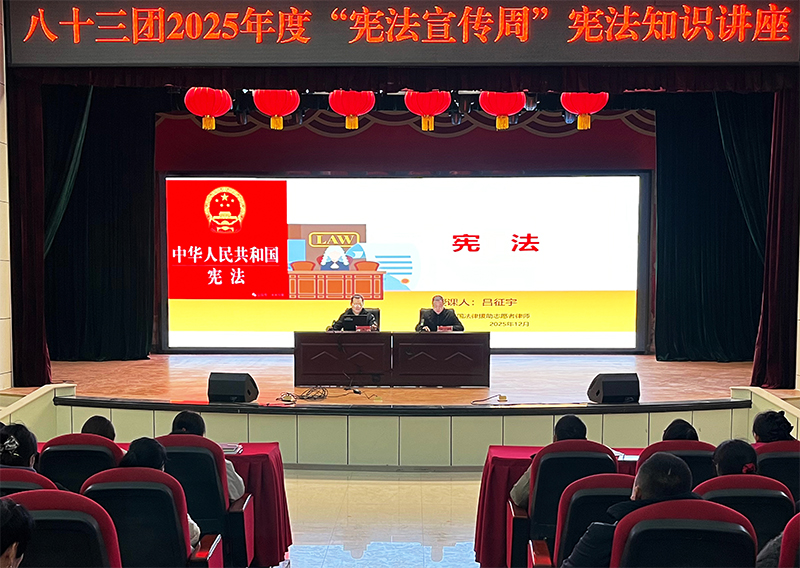 宪法宣传,精彩呈“宪”。为推动职工群众集中深入学习宣传宪法,维护宪法权威,增强全民法治观念。第五师八十三团司法所邀请“1+1”中国法律援助志愿者吕征宇律师进行专题授课。律师紧扣“学习宣传贯彻习近平法治思想,推动宪法深入人心”主题,结合自身丰富的法律实务经验,用生动形象、通俗易懂的语言,对宪法的历史沿革、核心要义、重要作用以及与国家发展、个人生活的密切关系进行了深入浅出的解读。通过案例分析、法条解析等方式,帮助大家深刻理解宪法是国家的根本大法,是治国安邦的总章程。讲座内容翔实、重点突出,有效提升了参训人员对宪法的尊崇意识和认知水平。