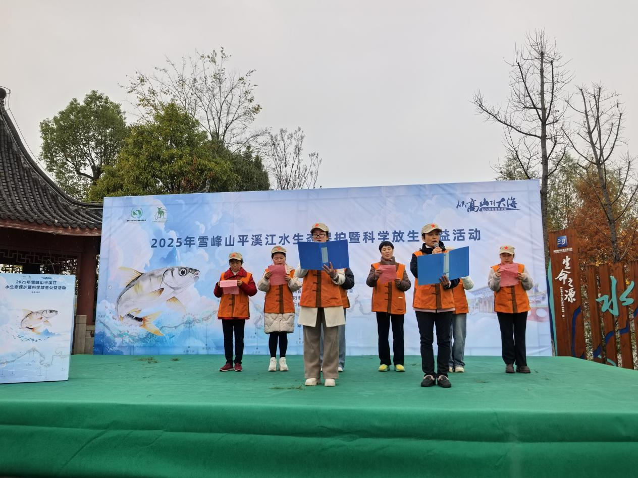 启动仪式上,中国书法家协会会员王祯辅向主办方捐赠了放生护生书法作品,洞口县各界代表朗诵了《科学放生护生倡议书》,号召社会公众恪守法规、严选物种、审慎选址、文明放生。歌曲《天下宗祠》生动诠释了洞口作为“中国宗祠文化之都”深厚的文化底蕴;而国家级非物质文化遗产“棕包脑”,则承载着人们对家国昌隆、幸福安康的深切祝福。启动仪式后当地志愿者开展了沿平溪江净滩行动。
