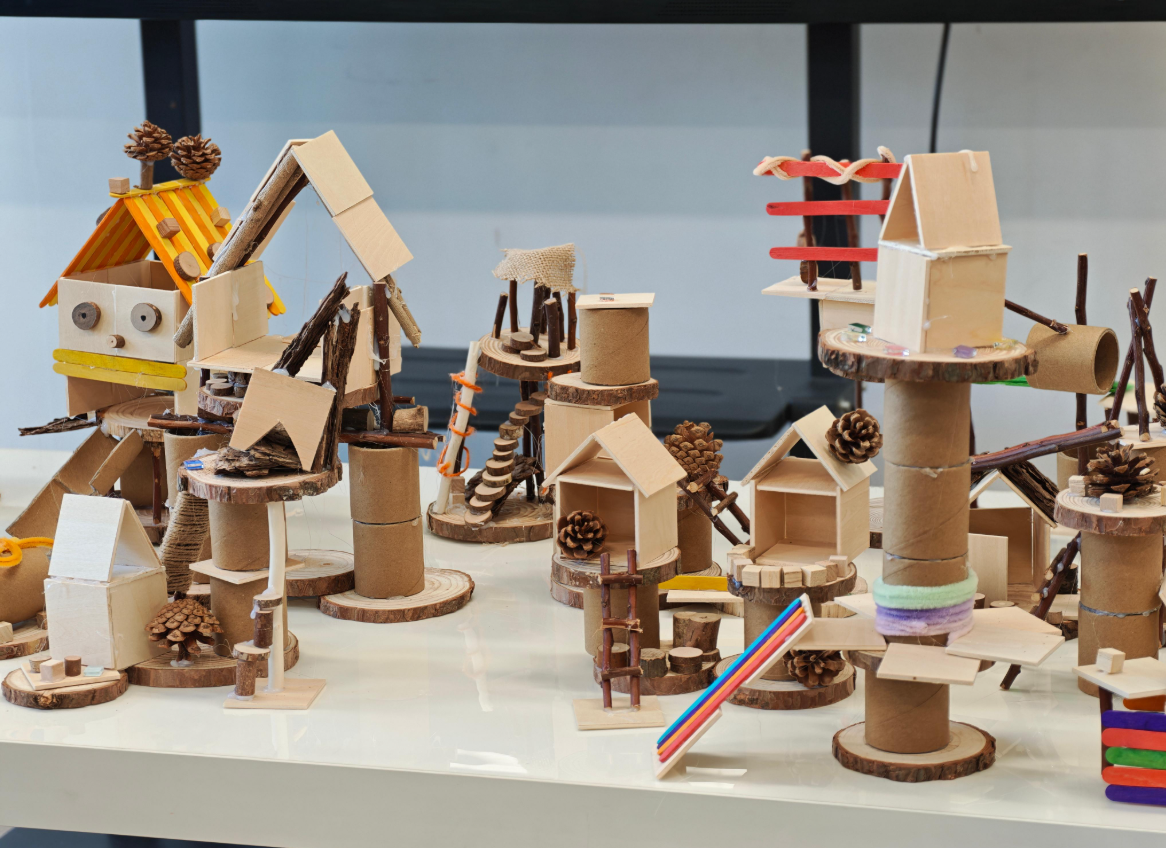 经过一上午的时间,20件独具创意的昆虫树屋集中亮相展示区,组成微型“昆虫社区”。孩子们主动分享设计理念与制作心得。活动最后,全体家庭手持作品拍摄“作品全家福”,在活动横幅前留下珍贵合影,照片中孩子们的骄傲与家长们的欣慰,成为此次亲子共育的最佳见证。