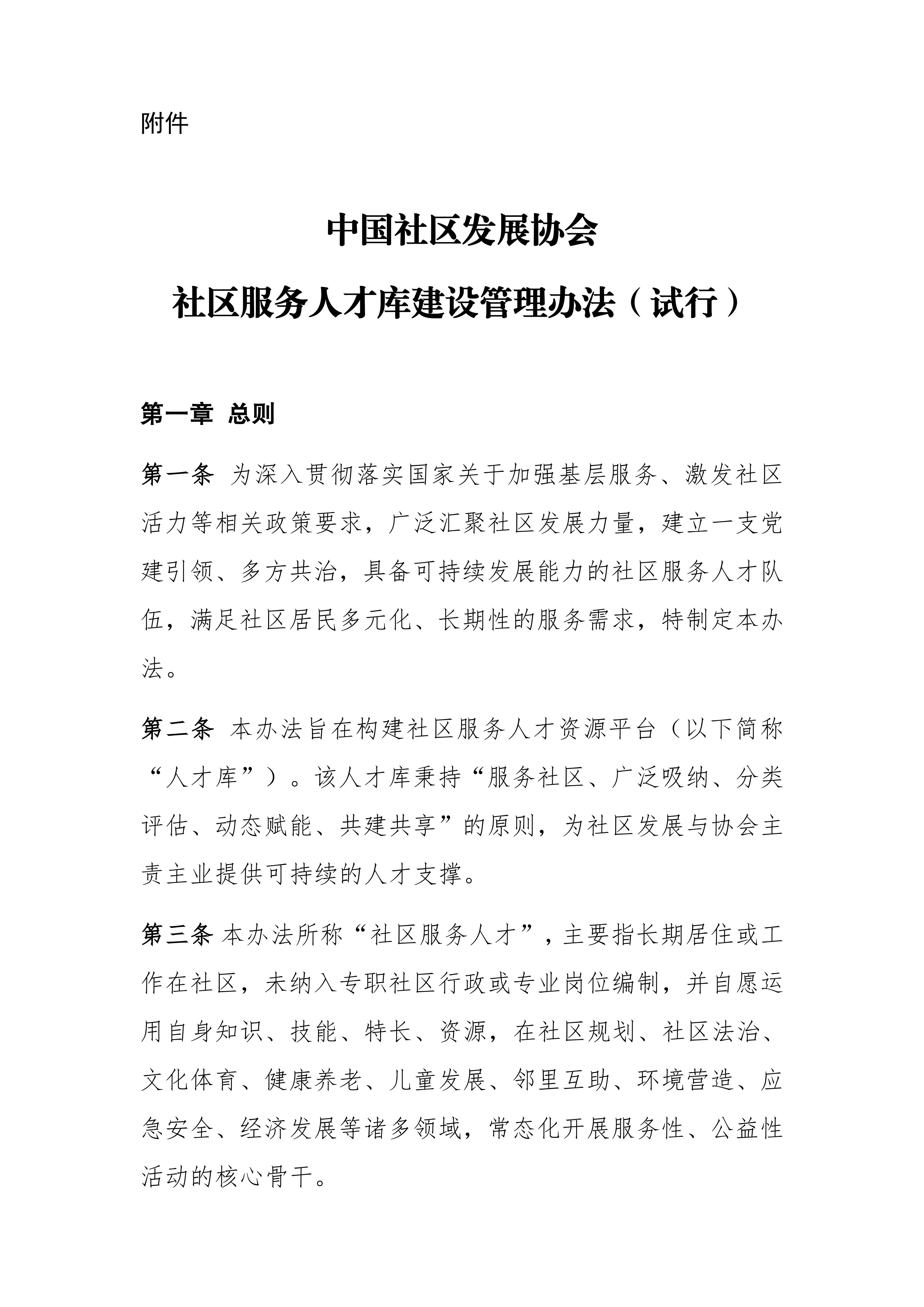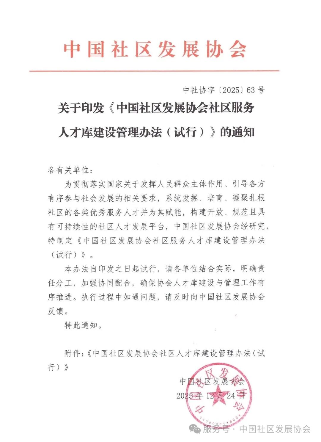 关于印发《中国社区发展协会社区服务人才库建设管理办法(试行)》的通知