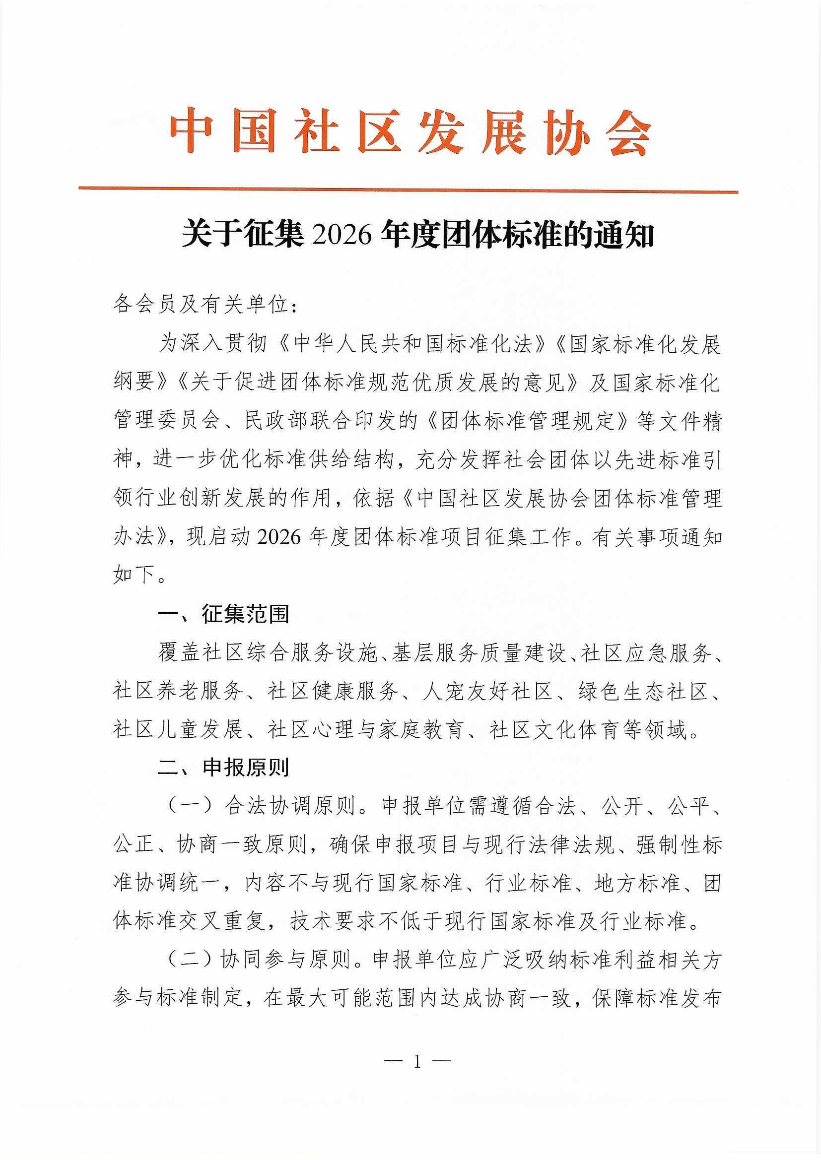 关于征集2026年度团体标准的通知