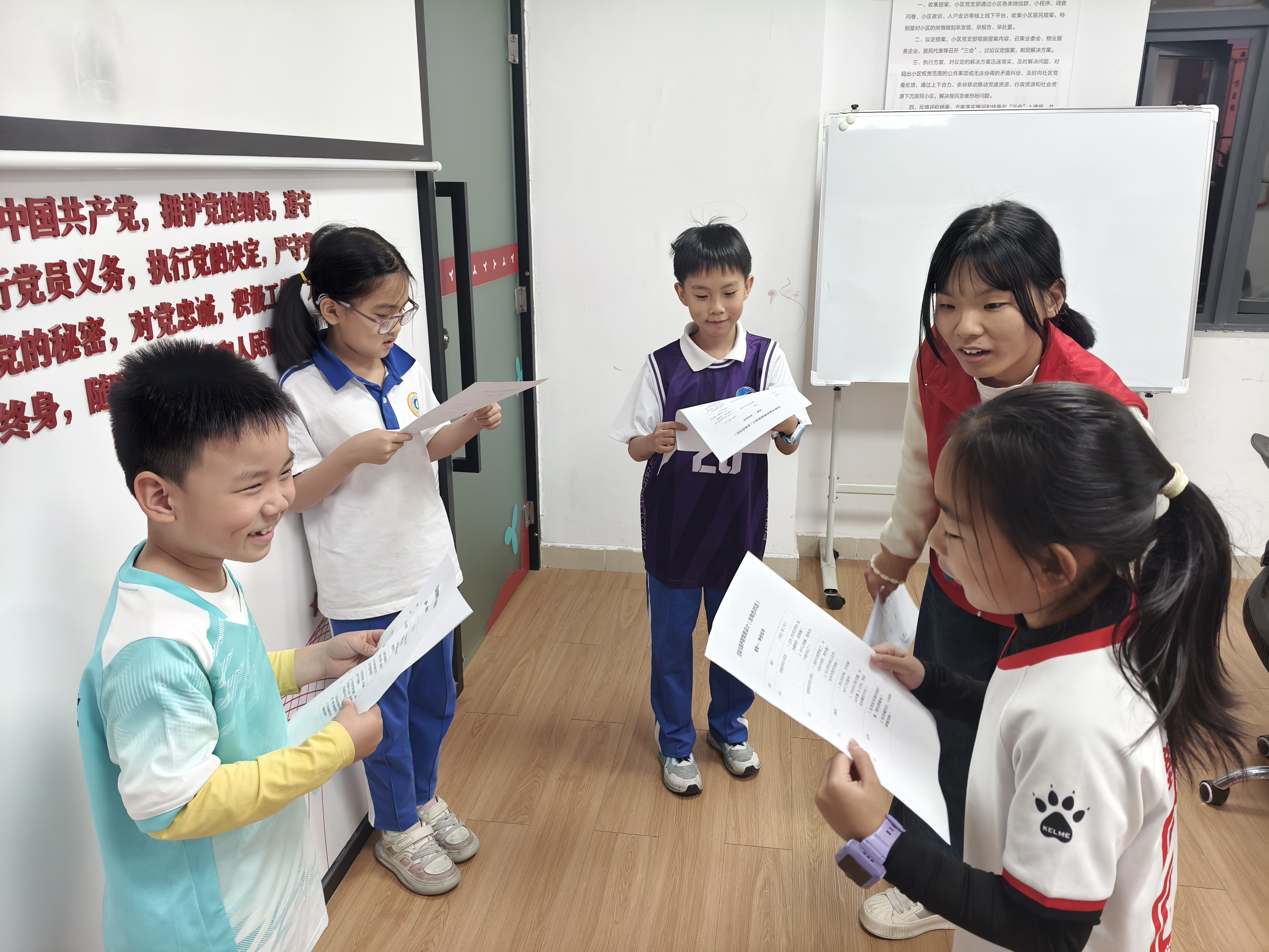 7-9岁是儿童沟通能力发展的“黄金窗口期”,为帮助儿童掌握实用沟通技巧、收获自信社交的“金钥匙”。2025年11月21日-12月19日,壆岗社区社工开展了“童言畅语”儿童沟通技巧提升小组活动。小组以游戏互动、情景模拟等趣味形式,围绕同辈沟通、亲子沟通及非语言沟通展开,为儿童搭建起一个充满趣味与温情的交流实践平台,让孩子们在欢声笑语中解锁沟通的奥秘。