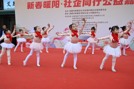 为喜迎新春、促进社区融合、传递公共温暖。2026年1月31日,由护国社区居委会主办,新都区领航社会工作服务中心承办的新春暖阳·社企同行公益嘉年华活动顺利开展。这场由护国社区党委牵头,联合辖区星光嘉睿艺术学校、护国幼儿园、辖区文艺自组织、酒店企业和物业单位等多方力量共同打造的大型公益活动,不仅是一场喜庆祥和的新春盛会,更是一次"百家舞台展风采、社区融合显真情、公益精神暖人心"的生动实践。通过舞台表演、公益义卖、爱心捐赠四大板块,让社区居民在欢乐祥和的氛围中,感受到了浓浓的邻里情和家园爱。