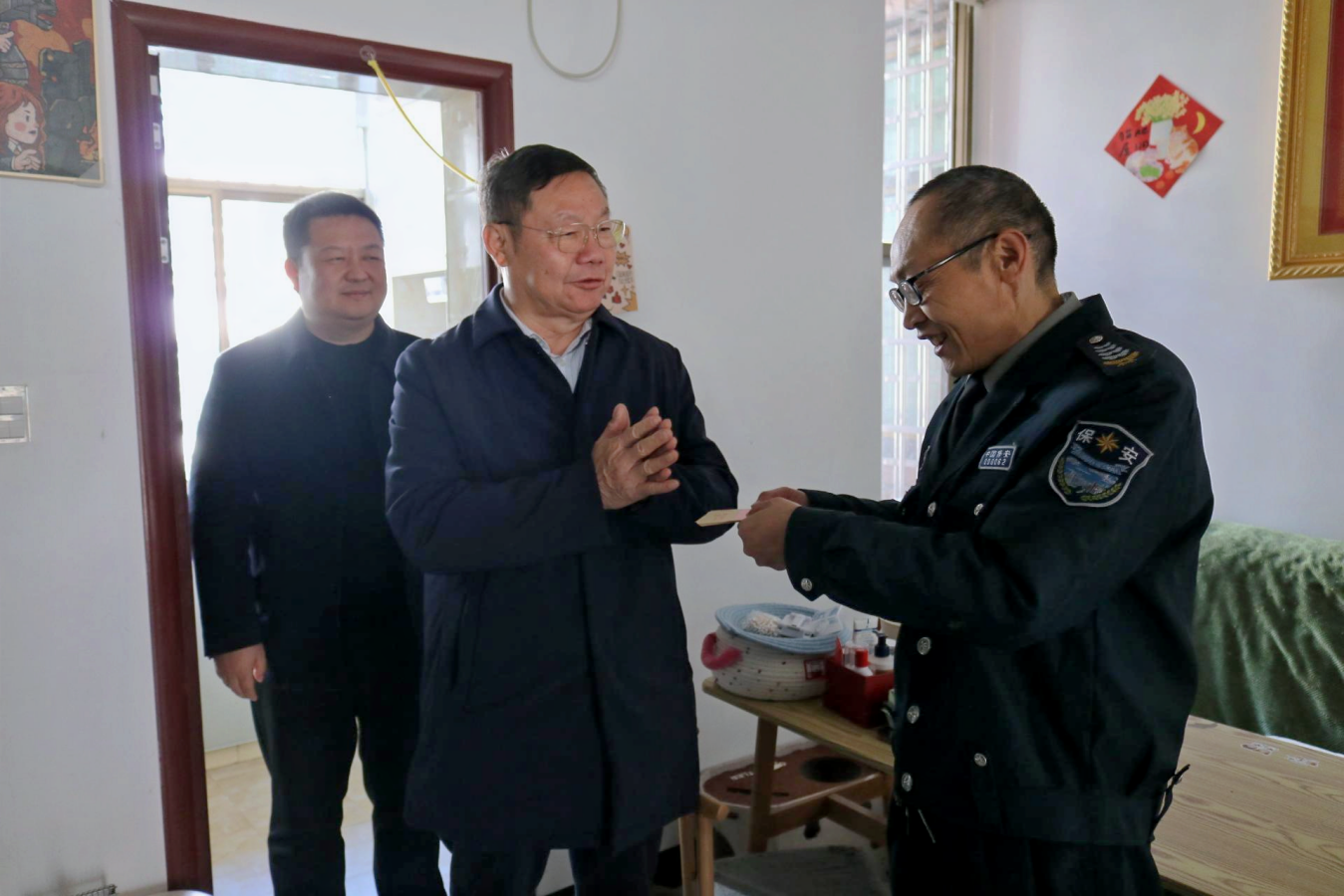 岁寒情愈暖,慰问传初心。为进一步落实困难保安员帮扶机制,切实提升保安员幸福感,春节前夕,省公安厅治安总队、省保安协会深入开展困难保安员慰问活动,省保安协会会长谭和平、顾问赵剑,省公安厅治安总队副总队长吴敏、治安总队防控支队支队长柴礼军、副支队长王咏涛等分赴全省14个市州,为135位困难保安员送上慰问金和新春祝福,各市州公安、协会、企业代表参加活动。