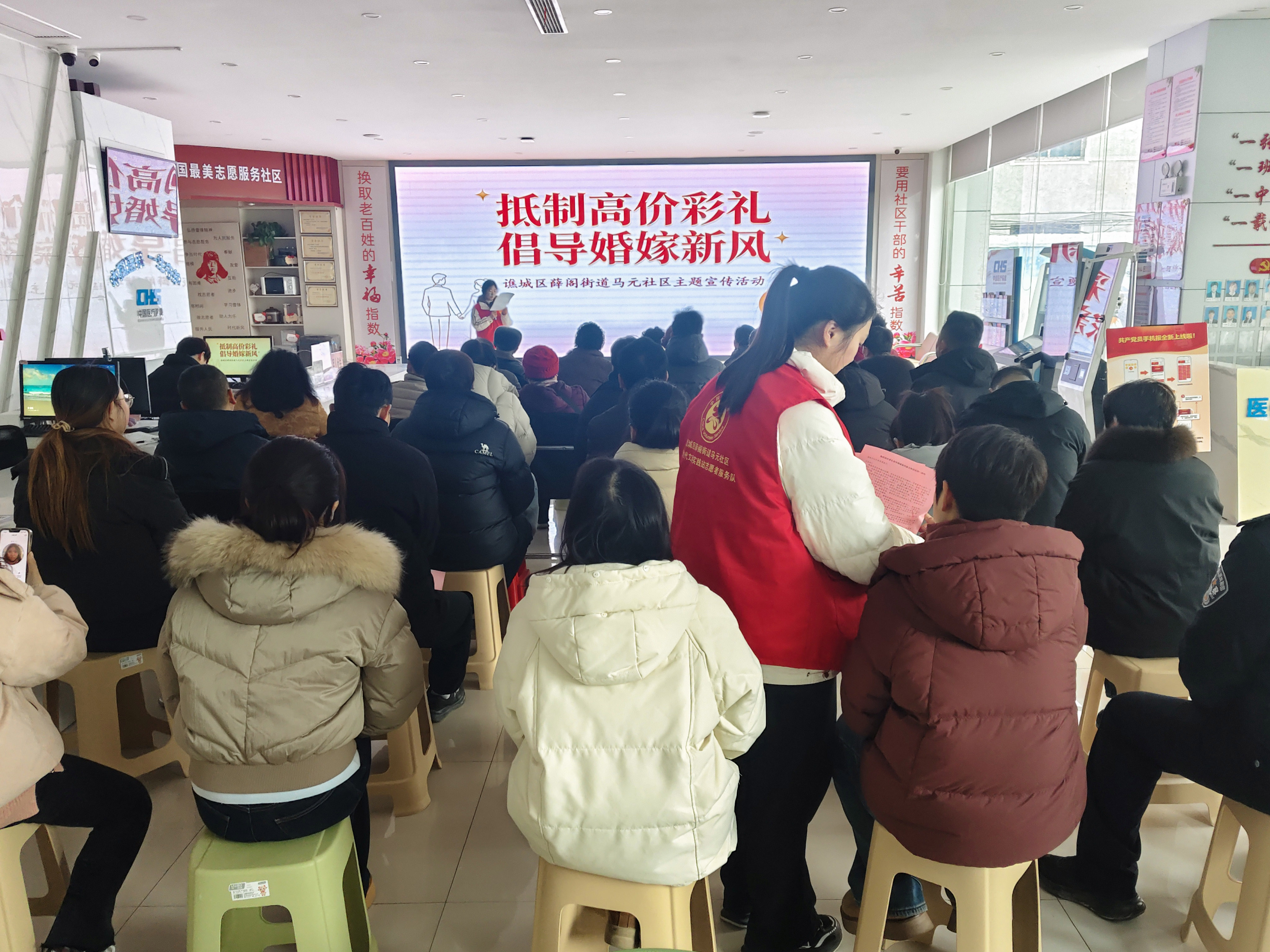 为破除婚嫁陋习、弘扬文明风尚,2月5日,安徽省亳州市谯城区薛阁街道马元社区开展 “抵制高价彩礼 倡导婚嫁新风” 主题宣传活动,向辖区居民发放《抵制高价彩礼 倡导婚嫁新风致全体居民的一封信》,以多样互动形式引导居民树立健康婚恋观,让文明新风浸润社区每个角落。