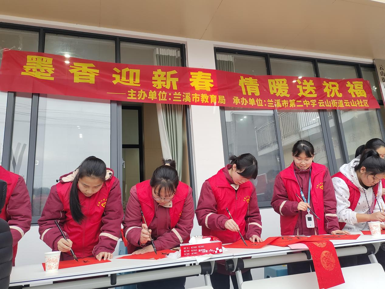 腊月寒冬暖意浓,墨香阵阵迎新春。近日,浙江省兰溪市云山街道云山社区联合兰溪二中开展“墨香迎新春 情暖送祝福”活动,学生们铺纸研墨,现场挥毫书写春联与“福”字赠予居民,红纸黑字间满载节日祝福。社区工作人员还带领学生志愿者携带生活物资,上门慰问困难老人,以笔墨传情、以行动暖心,让传统文化与邻里温情在社区交融。