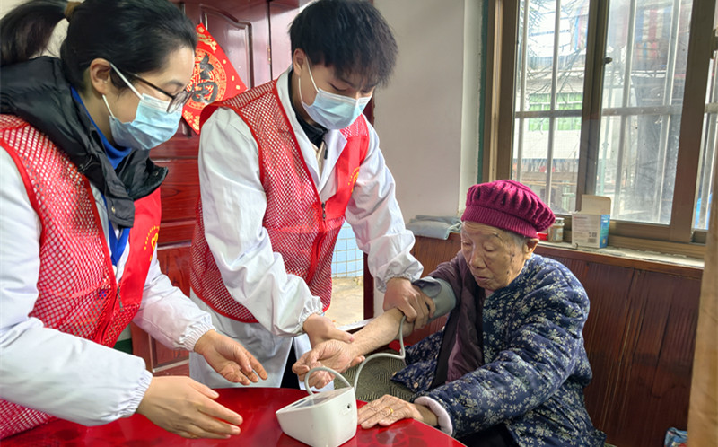 针对社区内行动不便、独居空巢等上门不便的老年人,活动组建由医护人员、社工、大学生组成的志愿服务队,开展“一对一”精准帮扶。每到一户,医护人员都细致完成血压、血糖检测,询问日常身体状况和用药情况,量身定制健康方案;社工、志愿者们为老人送上大米、定制水杯等慰问品,叮嘱老人注意春季保暖、合理膳食,将党和政府的关怀与雷锋精神的温暖,送到老人心坎上。