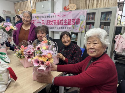 活动最后,居民们手捧自己亲手制作的花篮,脸上洋溢着满足与喜悦的笑容,共同合影留念,定格下这一温馨美好的瞬间。大家纷纷表示,这样的活动不仅让她们学到了实用的健康知识和花艺技能,更让她们感受到了社区对女性的关爱与尊重,也增进了邻里之间的交流与情谊。