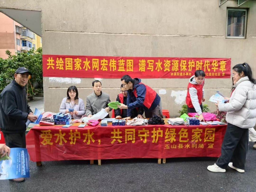 在第三十四届 “世界水日”、第三十九届 “中国水周” 暨第七届 “江西省河湖保护活动周” 到来之际,为深入贯彻落实水资源保护相关要求,大力倡导节水护水、爱水惜水理念,营造全民参与河湖保护的良好氛围,3 月 19 日,江西省玉山县水利局联合冰溪街道办事处、七里街社区,在七里街社区开展以 “共绘国家水网宏伟蓝图,谱写水资源保护时代华章” 为主题的节水护水宣传活动,以实际行动推动水资源保护理念深入人心、落地见效。
