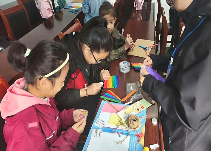 除了特色课程与手工实践,萤火智学团队始终将儿童心理关怀贯穿活动全程。针对乡村儿童课余陪伴不足、情绪表达欠缺等问题,团队成员以亲切的姿态与孩子们谈心交流,通过趣味互动游戏舒缓孩子们的紧张情绪,耐心倾听他们在学习、生活中的小烦恼,用温和的语言进行心理疏导与正向引导,鼓励孩子们勇敢表达自我、保持乐观心态,让孩子们在轻松的氛围中感受到真切的关爱与温暖,有效缓解成长中的心理压力。