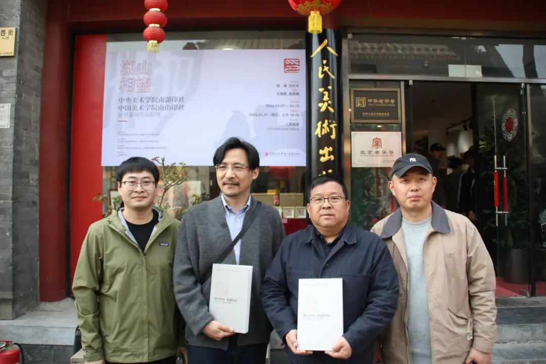 2026年3月29日上午,由中央美术学院南湖印社、中国美术学院南山印社主办的“湖山相望”篆刻作品联展在北京琉璃厂人美画廊开幕。