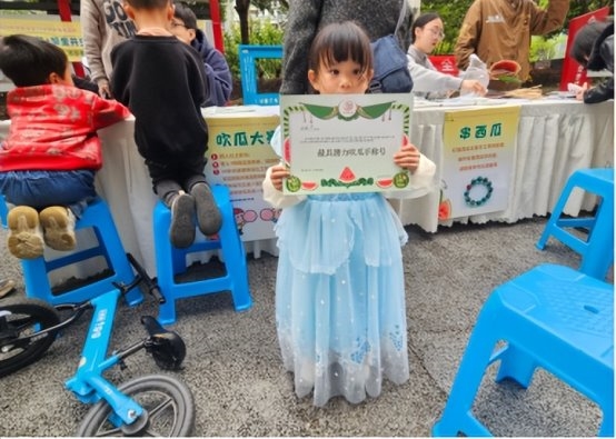 便民服务点位免费提供磨刀、理发服务,精准贴合中老年居民日常需求;游戏体验区开设真人西瓜棋、吹瓜大赛两大趣味项目,互动性强、轻松易参与;兑换区提供串西瓜手机链、国风西瓜扇子、西瓜泡泡糖体验,成品可带走留存纪念。工作人员分工明确、各司其职,全程做好引导、秩序维护、物料补给与现场保障,确保活动平稳有序开展。