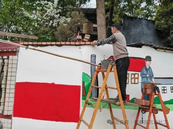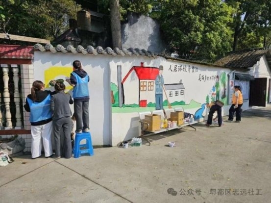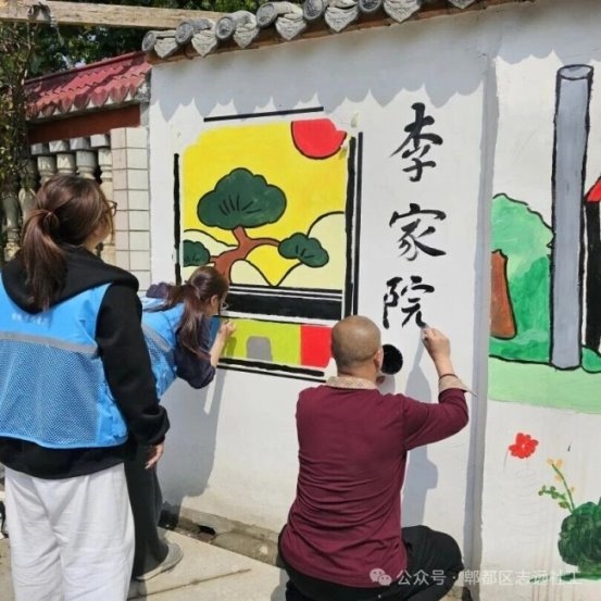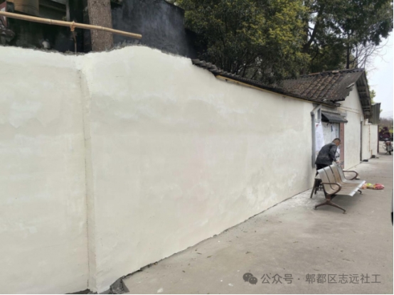 针对村民提出的“墙面斑驳、屋顶漏水污染墙面、路面杂物堆积”等具体问题,社工快速回应、积极行动,引导李家院子村民自发参与前期筹备工作,村民们主动分工、互帮互助,对微更新区域开展深度环境卫生整治,细致清扫路面杂物、清除卫生死角,对斑驳墙面进行全面腻子粉刷,仔细排查屋顶砖瓦破损情况并逐一修缮,从源头杜绝漏水污染墙面的问题,用实际行动践行我的院落我做主的理念。此外,社工精准对接村民需求,积极链接具备专业绘画功底的大学生志愿者团队,提前组织志愿者与村民代表沟通交流,结合村民诉求优化墙绘设计方案,明确分工、细化流程,为活动顺利推进筑牢基础、做好充分铺垫。