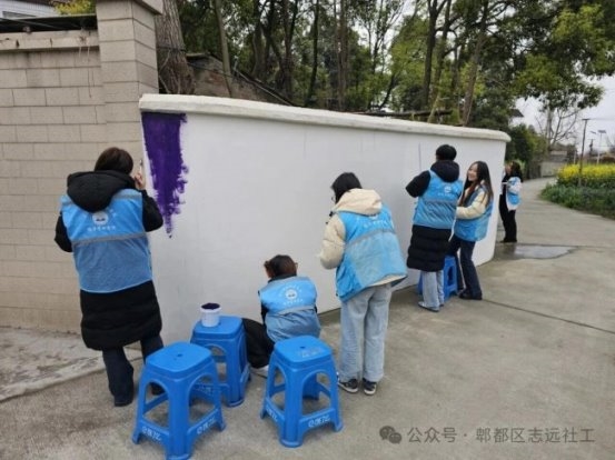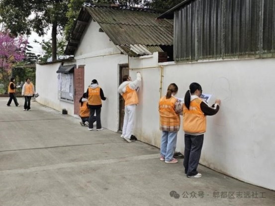活动现场,处处洋溢着共建共治共享的浓厚氛围,大学生志愿者团队、社工与村民们分工协作、默契配合,形成了“社工引导、志愿者出力、村民参与”的良好工作格局。志愿者们以院落墙面为画布,严格按照前期与村民共同确定的四大主题,精心勾勒轮廓、调配色彩,将用电用气安全常识、消防安全标识、道路交通安全规范及人居环境整治理念,通过生动形象的图案、简洁明了的文字、通俗易懂的场景呈现出来,让抽象的安全知识和文明理念变得直观可感、深入人心。不少村民主动放下手中的事务,积极参与到墙绘活动中来,有的帮忙递工具、调颜料,有的结合自身生活经验,向志愿者提出细节修改建议,比如调整安全标识的样式、优化文字的表述方式,确保墙绘内容更贴合院落实际、更契合村民期盼;还有的村民主动打扫现场卫生,维持活动秩序,用实际行动参与到院落共建中。