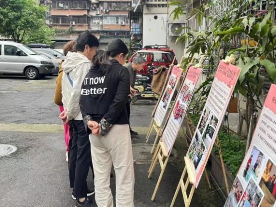 活动伊始,主持人简要介绍了本次活动的核心流程,让现场居民快速了解活动全貌,为活动开展奠定了良好基础。随后进入“益”起看·成果市集环节,工作人员向现场居民发放《“我的社区·我来造”公益创投指导手册》,并配合工具包、KT板等物料,带领居民共同回顾公益创投项目的各项成果,直观展现了项目落地以来为社区带来的积极变化,让居民真切感受到公益的力量。