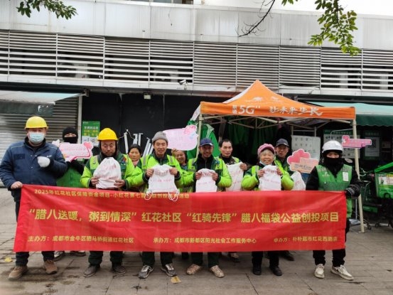 腊八节至,粥暖情浓。为弘扬中华优秀传统文化,营造互助友爱的社区氛围,2026年1月25日,成都市驷马桥街道红花社区联合新都区阳光社会工作服务中心,创新采用公益创投项目形式,由朴朴超市“红骑先锋”服务队及热心居民组成志愿者,共同开展了“腊八送暖·粥到情深”主题活动,为辖区内的特殊与一线劳动者群体送上了兼具温度与关怀的节日问候。