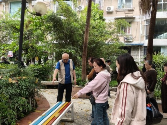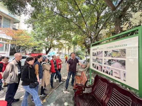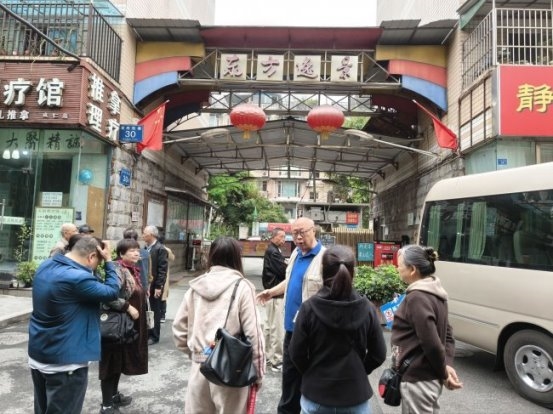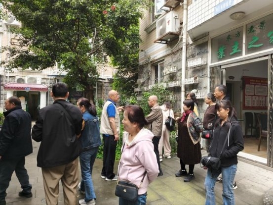 下午2时,参访团来到武侯区武青嘉苑小区。刚进大门,就看到小区党支部书记罗书记、物业经理及10余名志愿者组成的欢迎队伍,热情的氛围让参访团感受到这个老旧小区的独特活力。作为"党建引领小区治理"的示范单位,武青嘉苑以98%的物业缴费率、"缴7免5+年底分红"的创新模式,破解了居民与物业的矛盾,值得大家借鉴。
