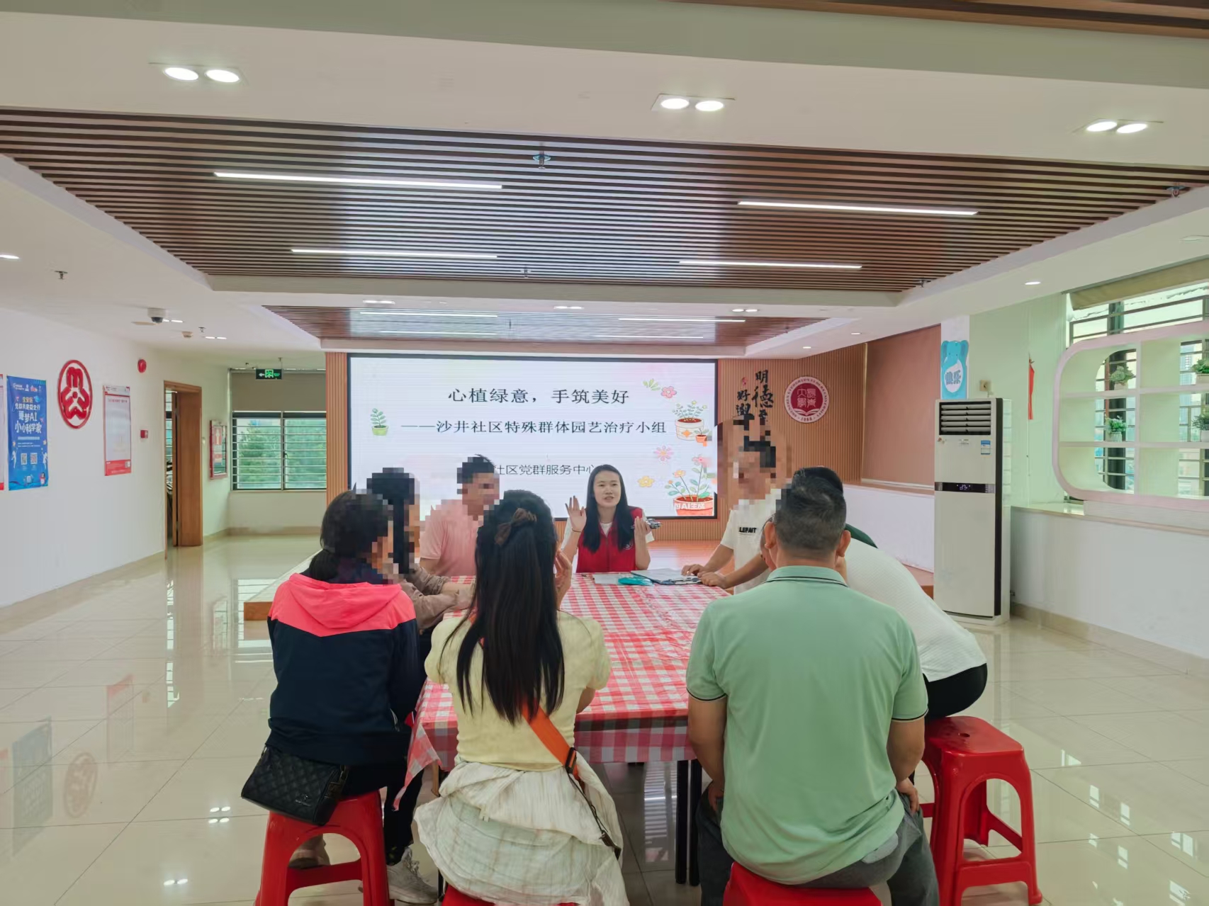 为关爱社区特殊群体身心健康,搭建社交互动平台,2026年4月13日至17日,在沙井社区党委的指导下,驻沙井社区党群服务中心的慧家社工于社区四楼活动室开展了“心植绿意,手筑美好”特殊群体园艺治疗小组活动,10名特殊群体人员及其家属参与,以绿植为媒、以手工为伴,传递社区温暖与治愈力量。