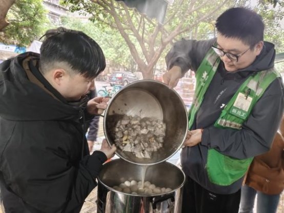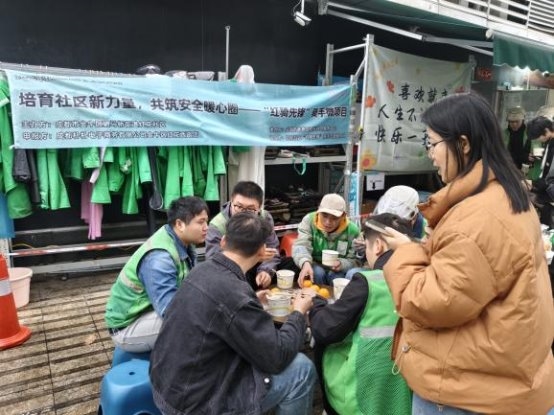 团建共餐环节温情满满,骑手们自主分工、协作烹饪,从食材管理到菜品烹制全程亲历亲为,在欢声笑语语烟火气中拉近了彼此距离。期间,骑手项目负责人牵头引导大家围绕配送困难、社区服务需求、生活便利诉求等话题畅所欲言,社工运用专业访谈技巧记录核心诉求,协助梳理形成具体建议,构建“骑手诉求表达—社工专业梳理—多方协同回应”的沟通闭环。从“穿行的陌生人”到“社区的熟面孔”,骑手们正以“移动探头”“温情纽带”的身份深度嵌入社区肌理。他们将配送路径转化为社区观察的“毛细血管”,通过社工反馈至社区治理平台,用“顺路的善意”搭建起服务群众的“最后一百米”。这种从“被动参与”到“主动共建”的转变,让骑手群体真正成为社区治理的“新力量”。