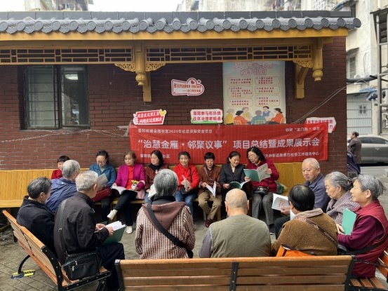 会上,社工围绕项目实施背景、推进过程、核心成果、数据成效进行全面总结,重点汇报了龙门阵议事角营造、《阳光议事规程》制定、五步议事法落地、三色管理机制运行、10场专题议事开展、停车治理、环境优化等重点工作,通报了协商事项办结率、空间使用频次、居民参与人次、问题解决满意度等核心指标,直观展示项目带来的真实改变。