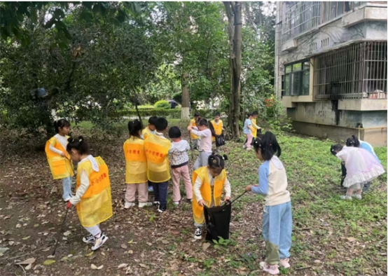 活动过程中,孩子们始终保持着高涨的热情,不怕脏、不怕累,认真完成每一项志愿服务任务。遇到藏在灌木丛深处的垃圾,他们耐心地用工具一点点夹出;看到散落的纸屑,他们主动弯腰拾起,每一个动作都充满了认真与执着。拾捡过程中,孩子们还会互相提醒、互相帮助,分享拾捡心得,在劳动中收获友谊、学会协作。经过一段时间的辛勤付出,孩子们手中的垃圾袋都装得满满当当,原本散落垃圾的院落变得整洁有序,看着自己的劳动成果,孩子们的脸上都洋溢着自豪与满足的笑容。