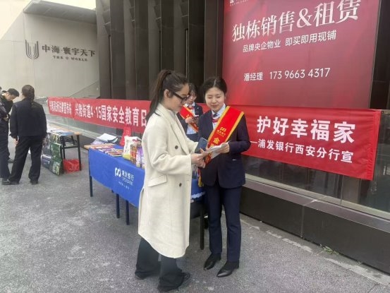 在第十一个全民国家安全教育日来临之际,浦发银行西安西太路支行联合云海社区、兴隆司法所、平安办兴隆街道,走进中海·寰宇天下,开展“守好钱袋子 护好幸福家”主题宣传活动,将金融安全知识送到居民家门口,以实际行动筑牢社区金融安全防线。