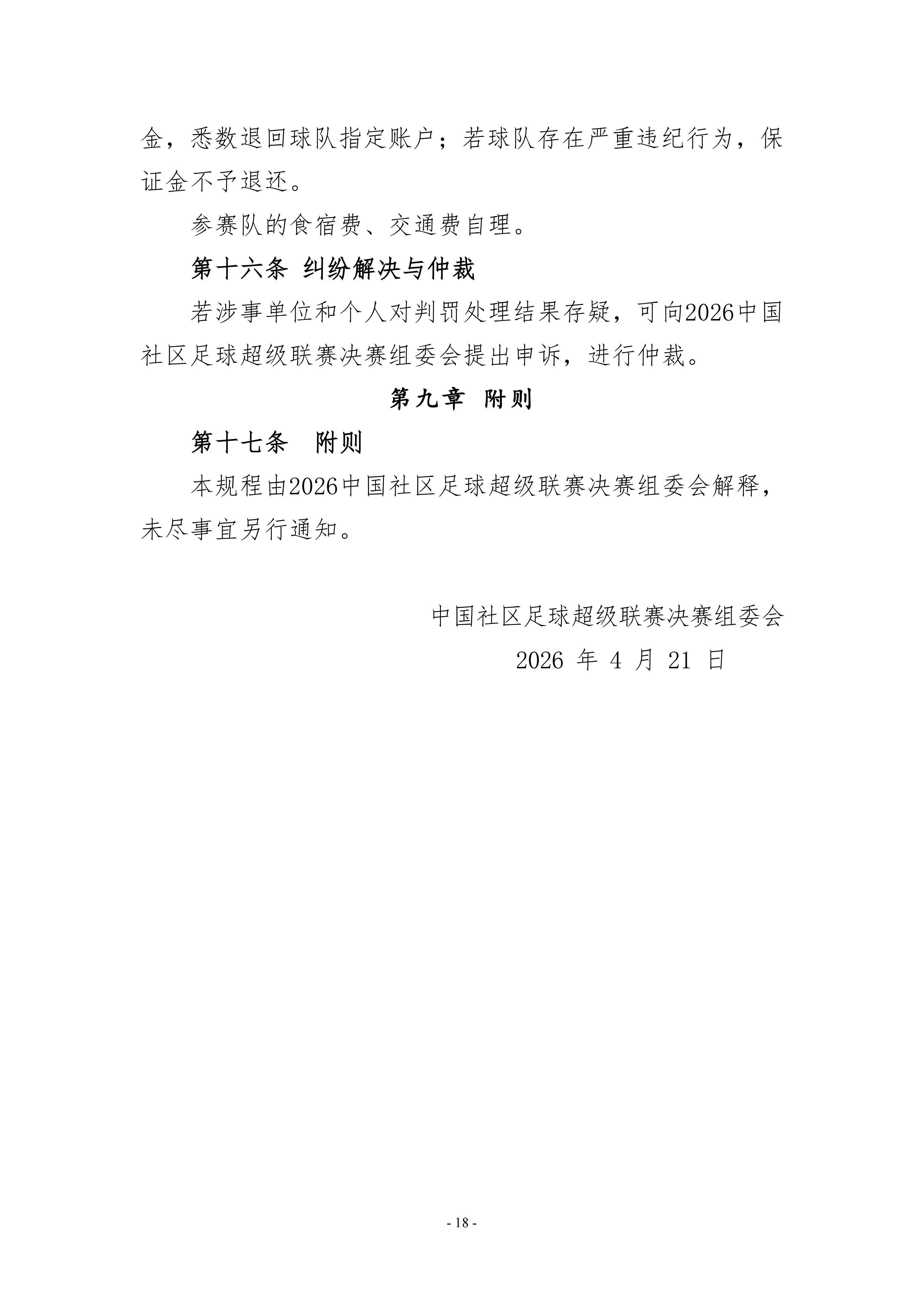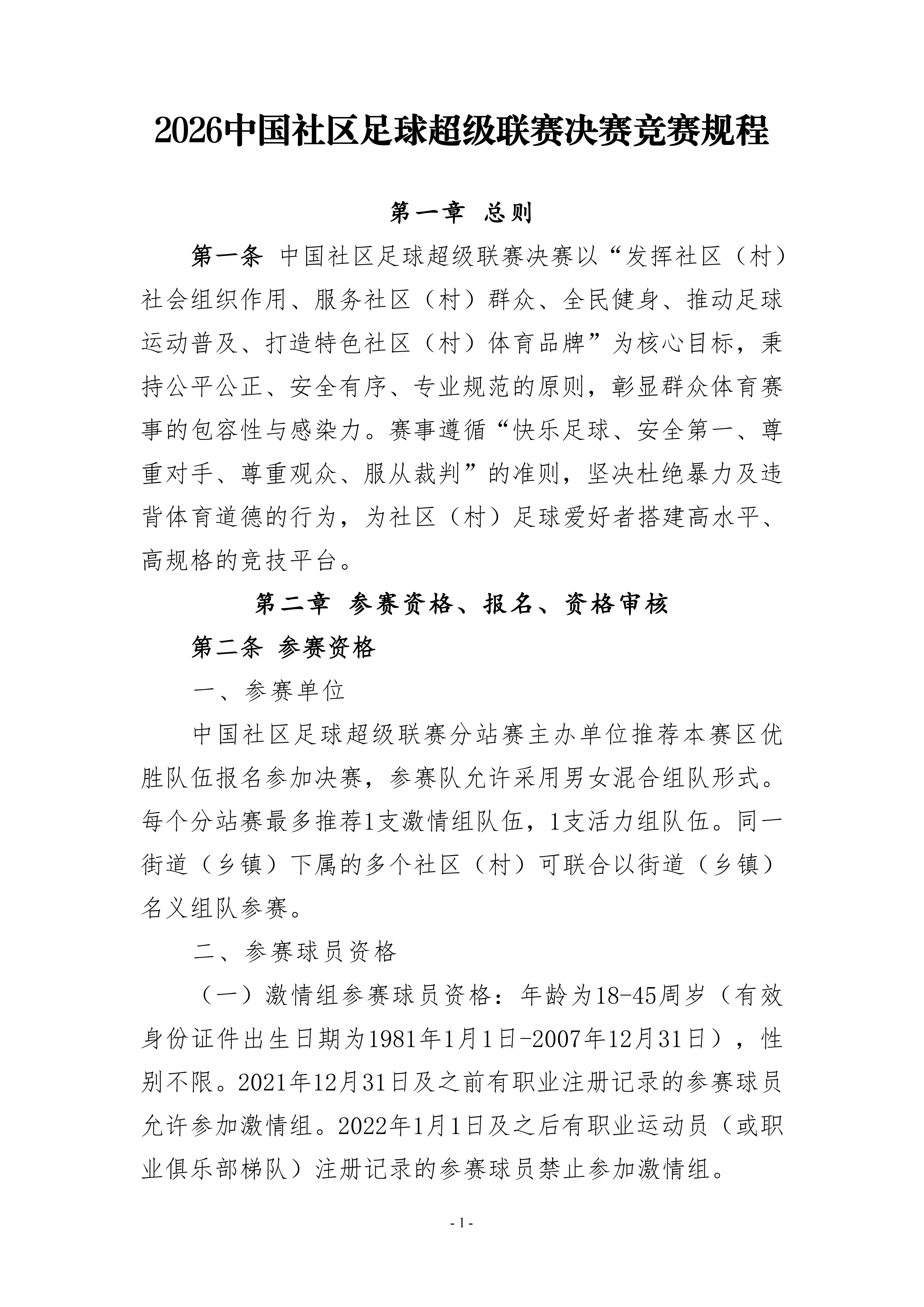 2026中国社区足球超级联赛决赛竞赛规程