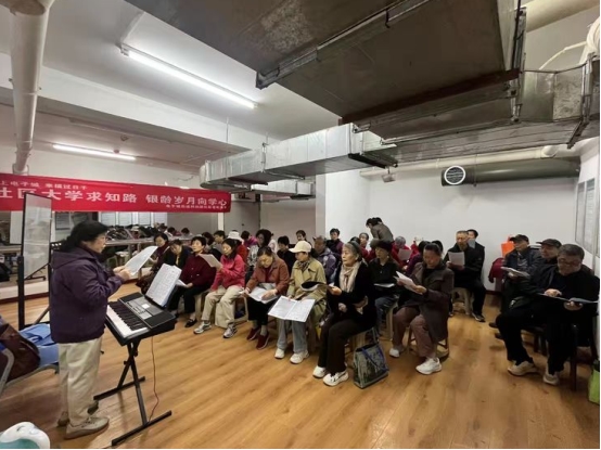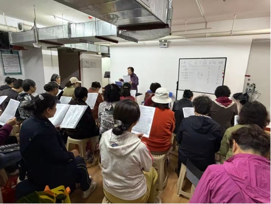 合唱课堂上,银龄学员们齐聚一堂。在老师的指导下,从基础发声到多声部配合,学员们认真学习、用心感受音乐的魅力。从经典红歌到时代新曲,悠扬的歌声不仅提升了音乐素养,更成为情感交流的纽带,唱响了科创路社区老年人的精神风貌。