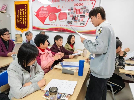“字正腔圆传真情,抑扬顿挫抒心怀。”在普通话与朗诵课堂上,学员们从发音纠正开始,逐步学习语言表达的技巧。通过经典诗词、优美散文的诵读练习,学员们不仅提升了语言表达能力,更在字里行间感受文学魅力,用声音传递情感,展现银龄一族的语言风采。