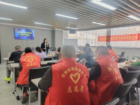 为进一步推动社区志愿服务规范化、常态化发展,提升居民志愿服务意识与服务能力,2026年4月24日上午,文林街道建设社区在邻里中心4楼会议室成功举办了“志愿同心·服务同行”社区志愿服务通识培训活动。本次活动由文林街道办、建设社区主办,成都力行社会工作服务中心承办,吸引了党员骨干、热心居民代表、网格员、居民小组长及有意向参与社区志愿服务的积极分子等60余人参与。