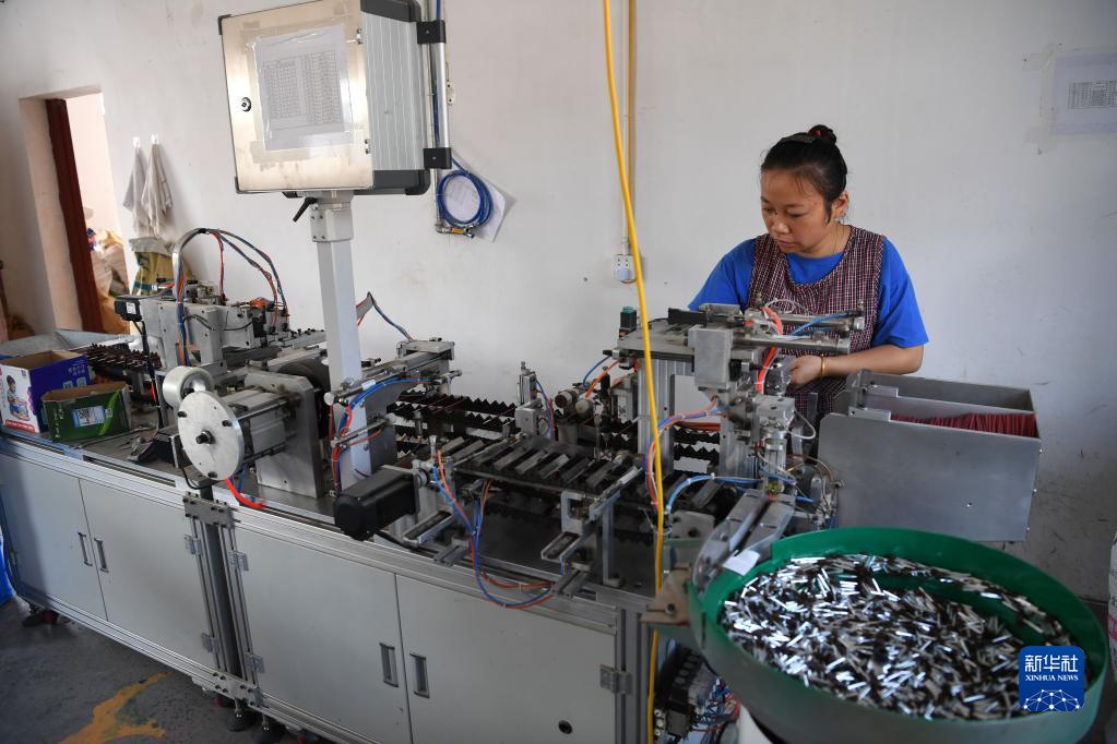 8月25日,在泾县榔桥镇一家油画笔企业,工人在加工油画笔。