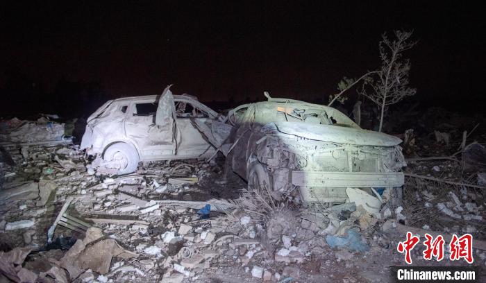 消防坦克火速增援广汉烟花爆竹燃爆事故现场。(资料图) 张金 摄