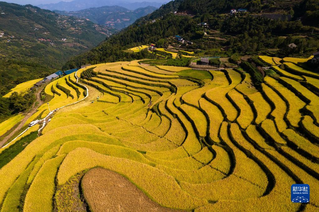 时下,湖北省宜昌市秭归县高山冷水稻进入收获季。当地农民抢抓农时进行收割、搬运、贮藏,确保秋粮颗粒归仓,田间地头一派忙碌景象。层层叠叠的梯田、劳作的农民与传统民居构成了一幅美丽的农耕画卷。