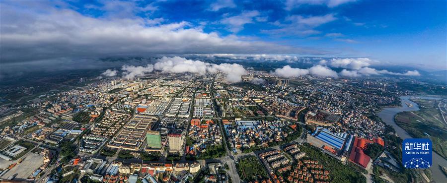 空中俯瞰清晨的瑞丽市(11月18日摄,无人机照片)。新华社记者 江文耀 摄