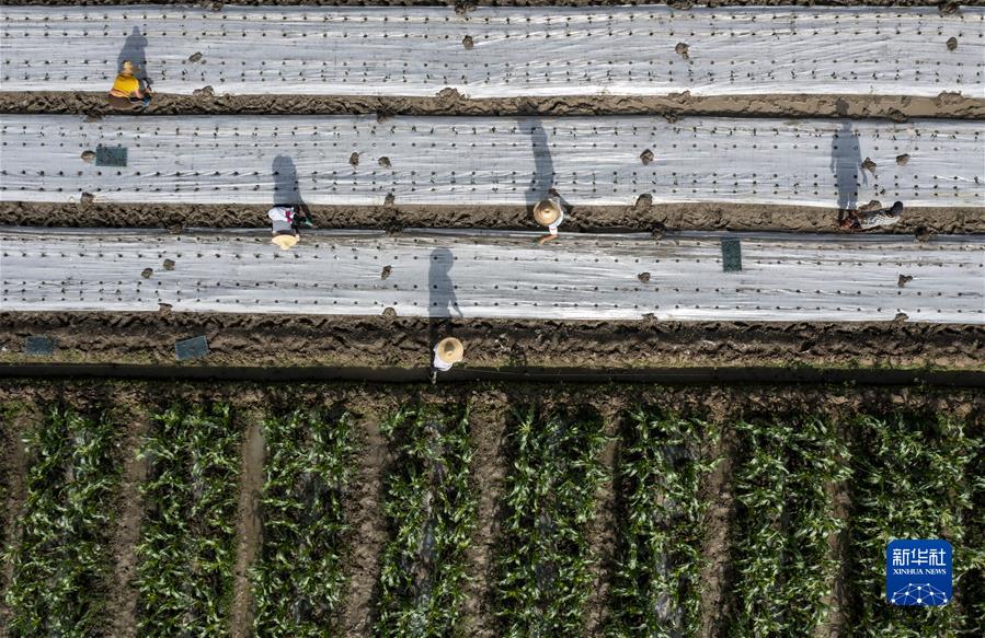 云南省瑞丽市姐相乡弄换村民小组村民在播种玉米(11月17日摄,无人机照片)。新华社记者 江文耀 摄